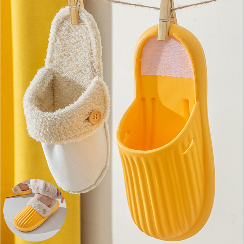 Solid Color Simple Cotton Slippers Winter Non-slip Home Warm Plush Slippers Household Indoor Couple Women's House Shoes